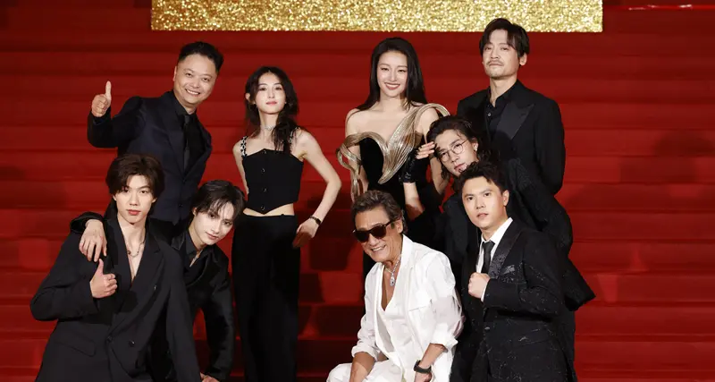 在上影节开幕式红毯上,梁家辉身着宽松白色西装搭配墨镜,上红毯前压腿扎马步自带“反派大佬”松弛感,和电影中“顶级罪犯”的神秘狠戾形成呼应。身旁的此沙、文俊辉、王振威、李哲坤四个“狼子”则一袭黑色西装,与梁家辉形成强烈反差,白与黑视觉对冲,“狼系反派团”的张力拉满,让人不禁好奇电影里反派团会构建出怎样一个庞大又隐秘的犯罪帝国?自官宣定档 8 月16日起,《捕风追影》便凭借权威阵容引发热议。梁家辉狠到违规,将盗贼头目的狠辣与阴冷演绎得淋漓尽致,引发网友直呼“好纯正的DADDY味”。梁家辉携手此沙、文俊辉、林秋楠等六个“狼子”组成“反派团”的惊喜混搭,更被网友感叹“新鲜感爆棚”。从成龙梁家辉老戏骨的神仙阵容,再到一众青年演员亮眼的动作表现,观众对影片的期待值已拉满,纷纷留言“《捕风追影》是暑期档最期待的动作犯罪大片,已经迫不及待想要走进影院”。